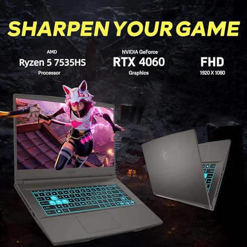 MSI Portátil delgado para juegos IPS de bisel delgado de 15.6 pulgadas y 144Hz FHD de 15.6 pulgadas, AMD Ryzen 5 7535HS, NVIDIA GeForce RTX 4060 -Window 11, con cable HDMI (2025) (16 GB de RAM | SSD