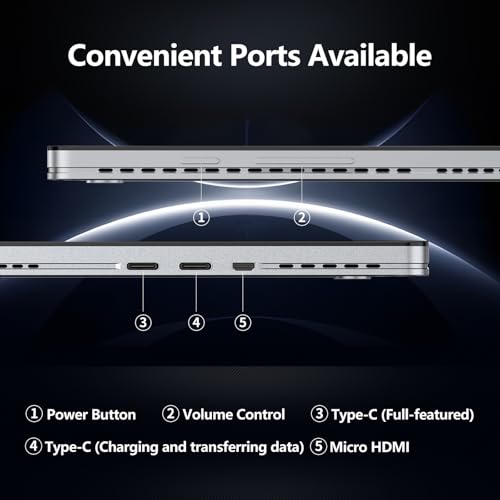 PUERTOS PARA CADA SITUACIÓN: NlAKUN 2 en 1 Tablet Portátil con tecladole proporciona puertos Tipo-C y Micro HDMI muy comunes para satisfacer sus necesidades diarias. Batería de iones de litio de alta capacidad de 5000mAh incorporada puede trabajar continuamente durante 4-8 horas (dependiendo del escenario de uso), 4 altavoces HiFi incorporados y micrófono. Las cámaras frontal y trasera duales permiten realizar videoconferencias y aprendizaje en línea