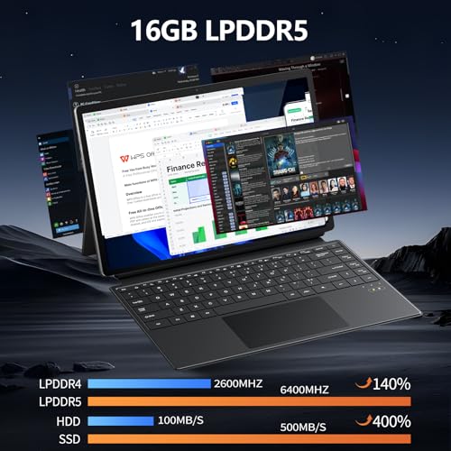 Potente capacidad de almacenamiento: NIAKUN portátil táctil convertible 2 en 1 tactil de 14 pulgadas está equipado con 16 GB de RAM DDR5 (6400MHz) para un funcionamiento más rápido del sistema y la capacidad de respuesta. También cuenta con un built-in de 512 GB / 1 TB SSD para facilitar la navegación de varias páginas web y ejecutar varios programas