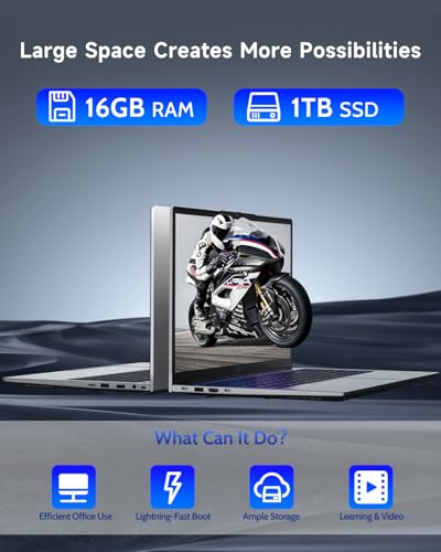 Especificaciones: NIMO 15.6 IPS FHD-Laptop, 16GB RAM 1TB SSD Intel Pentium Quad Core N100, Computadora con teclado retroiluminado Lector de huellas dactilares (Supera al i3-1115G4 hasta 3.4GHz) Laptops para estudiantes