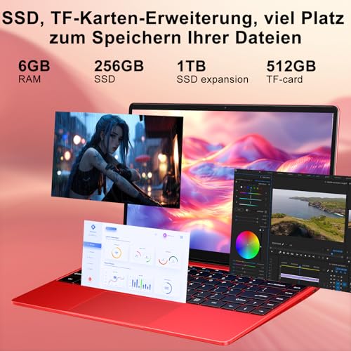 ?ALMACENAMIENTO Y ALMACENAMIENTO?Las computadoras portátiles con 6 GB de RAM aumentan su rendimiento. Y el disco duro SSD de 256 GB proporciona mucho espacio y velocidades de lectura/escritura más rápidas para sus documentos, fotos y videos. Slao puede expandir el almacenamiento a 512 GB a través de la expansión de la tarjeta TF o actualizar el SSD a 1 TB para suficiente espacio para la mayoría de las aplicaciones y múltiples flujos de trabajo.