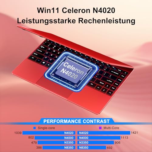 Especificaciones: NOTODD Ordenador portátil Celeron N4020 hasta 2,8 GHz, portátil de 14 pulgadas, Win 11 con 5G WiFi 6+256 GB SSD ampliación 1 TB, BT 4.2 1920 x 1080 FHD Mini conexión multimedia, portátil con película
