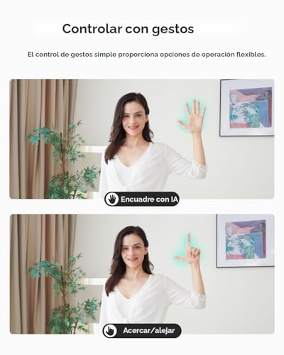【Comando con gestos】 Junto con el control de gestos dinámico 2.0, nuestra cámara web dice adiós a la engorrosa operación manual. Simplemente enfrente la cámara web, haga un gesto de «🖐» para abrir/cerrar el encuadre de IA, y haga un gesto de «👆» para controlar el zoom fácilmente.