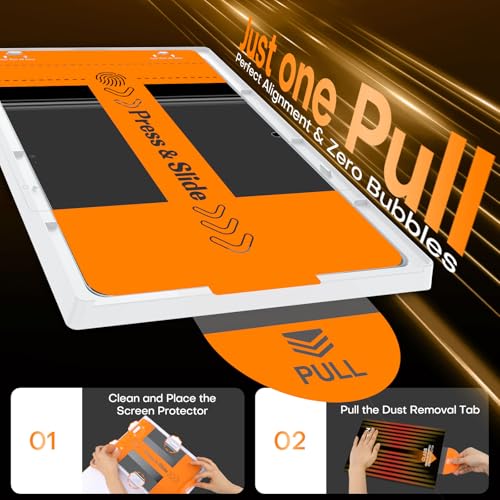 Effortlessly Simple Application: Experience the easiest installation process ever designed for a screen protector. Simply place your tablet into the application tray, then effortlessly press and pull the tab to lock the high-quality glass perfectly onto your screen. No complicated steps, no messy adhesives, and no frustration. It’s installation made foolproof—so simple you’ll hardly believe it’s done