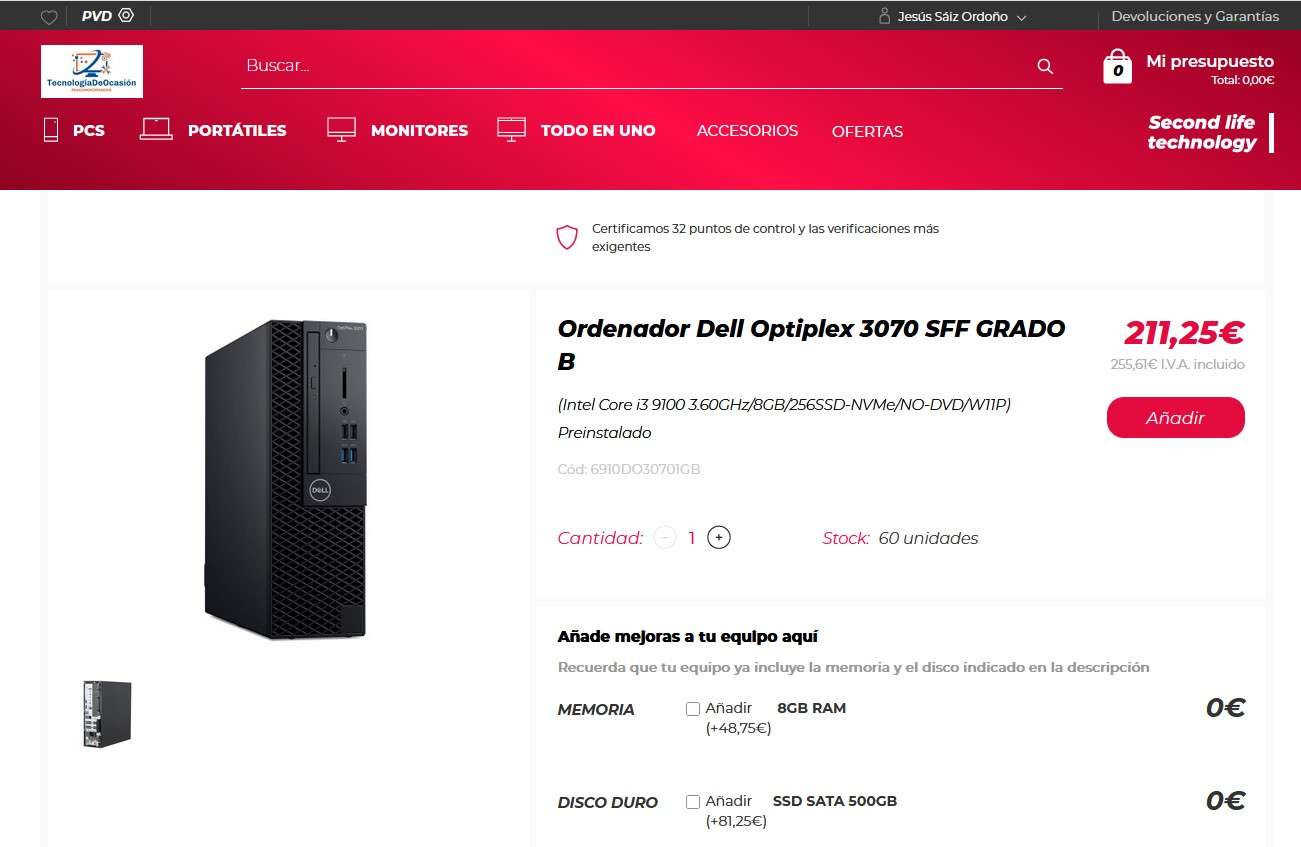 | Características Equipos comprobados y testeados completamente. Pueden tener signos de desgaste o arañazos en su carcasa, pero son completamente funcionales.Estos equipos incluyen licencia de Windows 11 Pro Ordenador sobremesa SFF GRADO B Especificaciones: · Marca DELL – Testeados y 100% verificados |