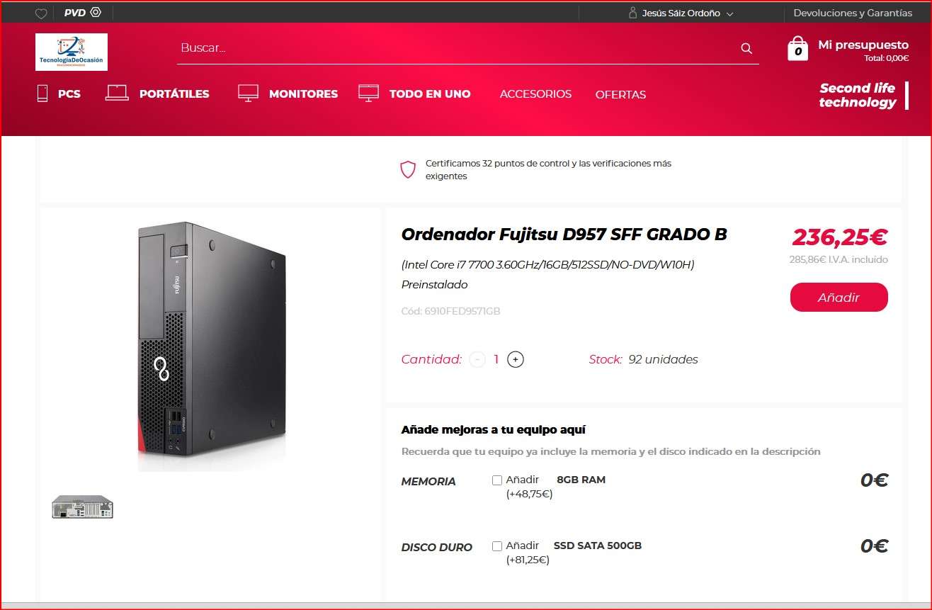Ordenador Fujitsu D957 SFF GRADO B