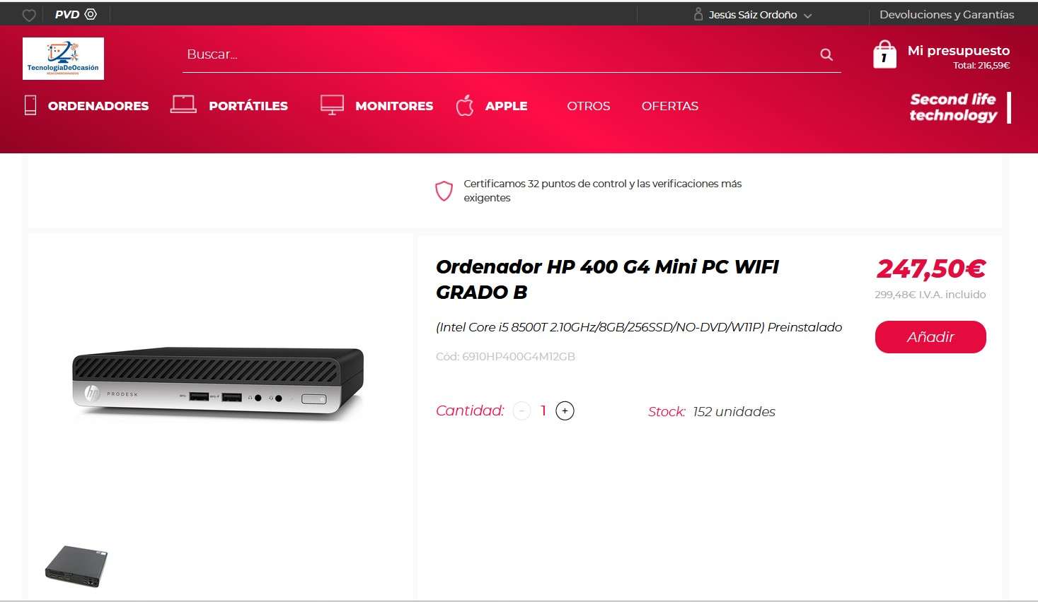 Características Equipos comprobados y testeados completamente. Pueden tener signos de desgaste o arañazos en su carcasa, pero son completamente funcionales.Estos equipos incluyen licencia de Windows 11 ProOrdenador sobremesa Mini Pc GRADO B Especificaciones: · Marca HP – Testeados y 100% verificados |