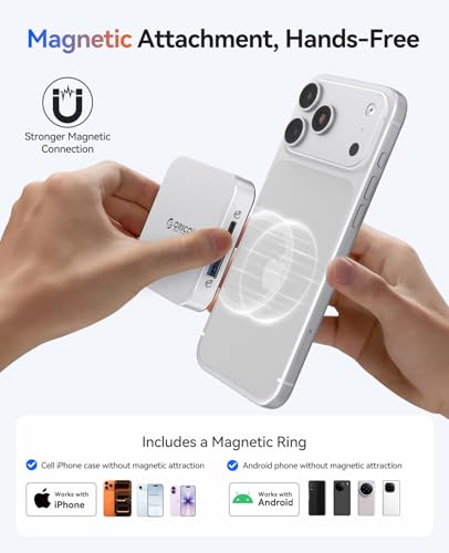 Hub USB C magnético MagSafe: esta base magnética USB C ORICO 8 en 1 tiene imanes fuertes que garantizan una fijación segura y antideslizante para uso con una sola mano. El anillo magnético incluido funciona con iPhone (incluso con fundas) y dispositivos Android