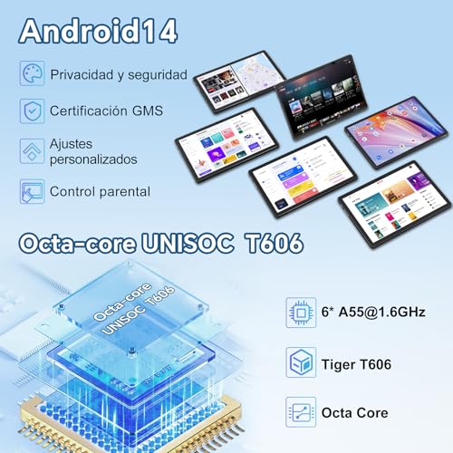 🚀【Tableta Android 14 + Octa Core】La tableta OSCAL pad 80 wifi de 10,1 pulgadas está equipada con el último sistema operativo Android 14. Las tabletas con Android 14 te permiten ver y configurar los permisos utilizados por las aplicaciones para evitar fugas de datos en primer lugar. Esta tableta Android funciona con un procesador Unisoc T606 octa-core de 12 nm que ofrece un rendimiento gráfico mejorado y velocidades de procesamiento rápidas, lo que garantiza una experiencia fluida al realizar múltiples tareas, jugar y transmitir video.