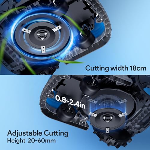 【Experiencia de Corte de Césped Personalizada】: El robot cortacésped tiene una velocidad de cuchilla de 3100 rpm y proporciona 9 niveles de altura ajustable, a saber, 20-25-30-35-40-45-50-55-60 mm, con un ancho de corte de 18 cm. que se puede personalizar para céspedes con diferentes características para satisfacer sus diversas necesidades.