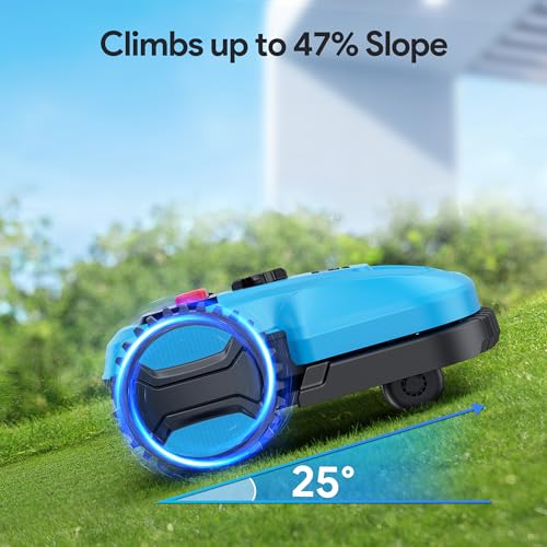 【Seguridad y Garantía de Calidad】: El cortacésped tiene sensores de precisión incorporados para detectar y evitar obstáculos automáticamente. El ángulo máximo de escalada puede alcanzar los 25 grados, adaptándose a jardines o céspedes de diversos terrenos. Ya sea una ladera o un terreno complejo, se puede manejar fácilmente, ahorrándole trabajo innecesario.