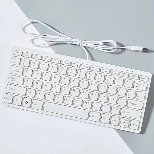 [Diseño Compacto y Ligero]: Este mini teclado de solo 28,5 x 12 x 1.4 cm y 380 g ahorra espacio en tu escritorio. Su cable de 1.8 m ofrece flexibilidad para cualquier configuración. Incluye disposición en español para escribir fácilmente tildes y caracteres especiales. [Teclas de Corto Recorrido]: Experiencia de tecleo cómoda y fluida gracias a las teclas de recorrido corto y alta sensibilidad, ideales para largas sesiones de escritura. [Teclas Multimedia Integradas]: Controla fácilmente audio, video y más con las teclas Fn de acceso directo, diseñadas para mejorar tu productividad. [Construcción Resistente y Duradera]: Fabricado con material ABS de alta calidad y tecnología de membrana, este teclado es ideal para oficinas y espacios de trabajo en casa, garantizando durabilidad y fiabilidad. [Compatibilidad Universal]: Compatible con Windows 7, 8, 10, 11 y versiones posteriores. El paquete incluye: 1 mini teclado y un manual de instrucciones para una instalación sin complicaciones.