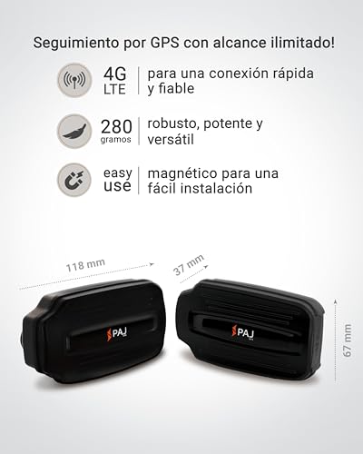 Especificaciones: PAJ GPS Power Finder 4G – Localizador GPS con Imán para Coches, Otros VehÃculos y Maquinaria – Seguimiento en Tiempo Real, Historial de Rutas y Alarmas – BaterÃa de hasta 90 DÃas (Modo Espera)