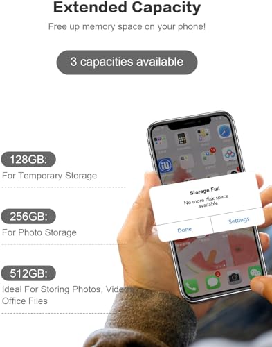 Verga de fotos de 512 GB para teléfono, área flash USB Qainerly para teléfono A