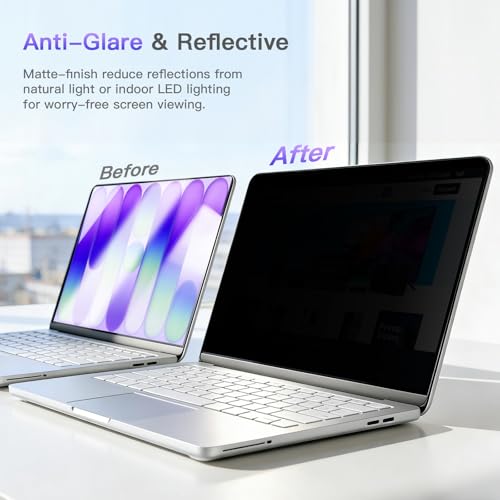 Antiarañazos y fácil de instalar: nuestra pantalla de privacidad MacBook Neo de 13 pulgadas no solo protege eficazmente tu privacidad visible, sino que también proporciona protección física completa contra arañazos, abolladuras y abolladuras diarias. Diseñado para ser compatible con pantallas táctiles, permanece apenas perceptible una vez instalado. Los angeles instalación es sencilla: simplemente limpia tu pantalla completamente y aplícala paso a paso (accesorios de limpieza están incluidos).