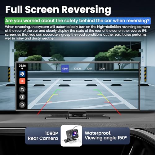 Cámara trasera de 1080P y enlace de espejo: la cámara trasera impermeable de 1080p funciona de manera confiable en condiciones climáticas adversas, como lluvia y niebla, asegurando que los conductores tengan una visión trasera clara en todas las condiciones climáticas. admite grabación simultánea. La pantalla inalámbrica CarPlay admite duplicación inalámbrica para dispositivos Android e iOS. Usa Mirror Link para mostrar la pantalla de tu smartphone en el CarPlay inalámbrico de 11.5 pulgadas, lo que te da acceso a aplicaciones, medios y más mientras conduces.