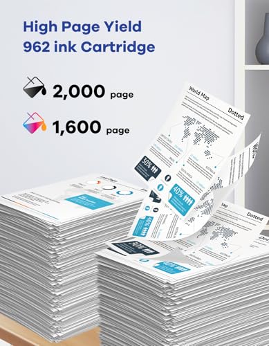 Garantía de calidad confiable: Descanse tranquilo sabiendo que nuestros cartuchos de tinta 962XL están certificados ISO-9001 e ISO-14001 para impresiones estables y de primera calidad en todo momento. Ya se trate de documentos, presentaciones o fotos, puedes confiar en nuestros cartuchos para ofrecer resultados consistentes