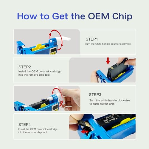 Sin chips: nuestro paquete combinado de cartuchos de tinta 923 no tiene chip, y necesitas mantener los chips viejos e instalarlos para conducir todo el juego de cartuchos de tinta 923. Los cartuchos de tinta están equipados con una herramienta de extracción de virutas e instrucciones (idioma español no garantizado), fácil de operar y usar.