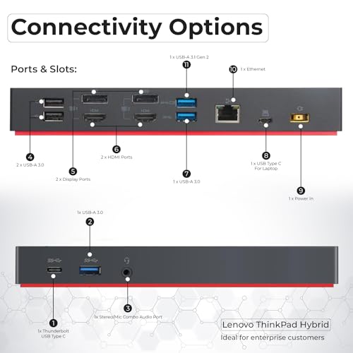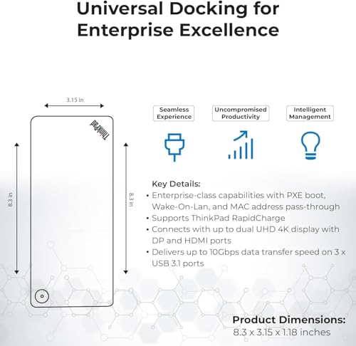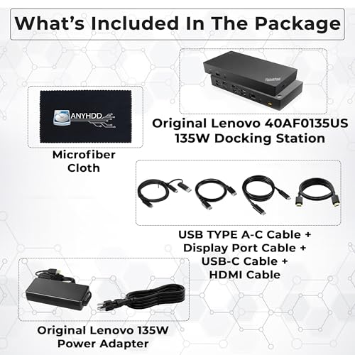 Paquete de estación de acoplamiento Thinkpad 40AF0135US – Estación de acoplamiento USB C con USB-A + adaptador USB tipo A + cable HDMI + cable DisplayPort + cable USB-C + paño de microfibra (renovado)