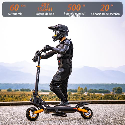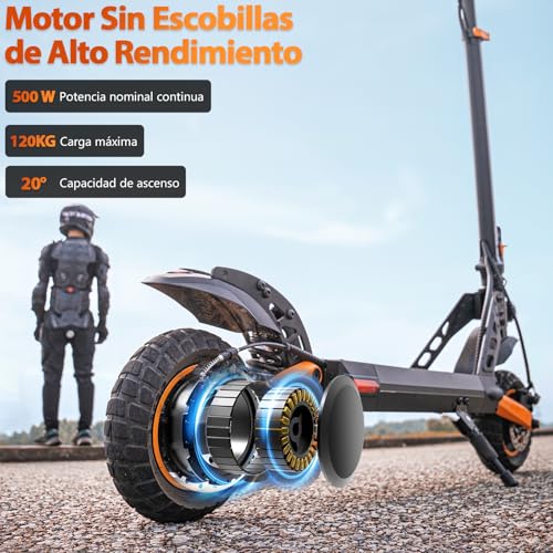 Patinete eléctrico ligero para adultos con motor Brushless de 800W 48V de potencia máxima, potencia nominal 500W, capaz de subir por cuestas con un alto grado de inclinación.