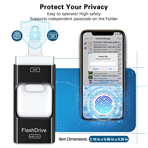Protección con contraseña, seguridad de almacenamiento de datos — La contraseña y el ID táctil pueden cifrar la información del archivo en la aplicación para proteger sus archivos privados, puede elegir cifrar toda la unidad flash USB o elegir cifrar un archivo específico. No se preocupe de que otros roben sus archivos.