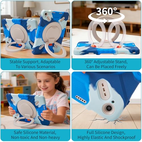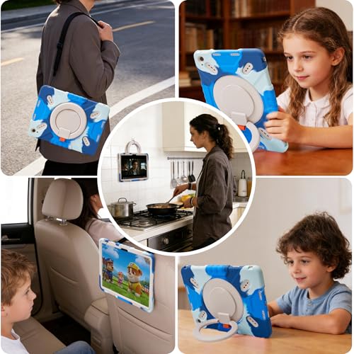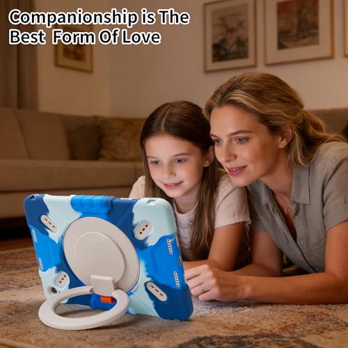 Pepkoo Funda para niños para iPad de 10.9 pulgadas 2022 / iPad de 11ª generación A16 2024, 3 capas a prueba de golpes, funda protectora con mango giratorio de 360° y soporte para lápices (azul oscuro)