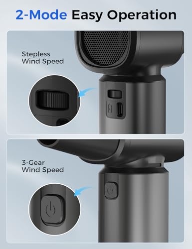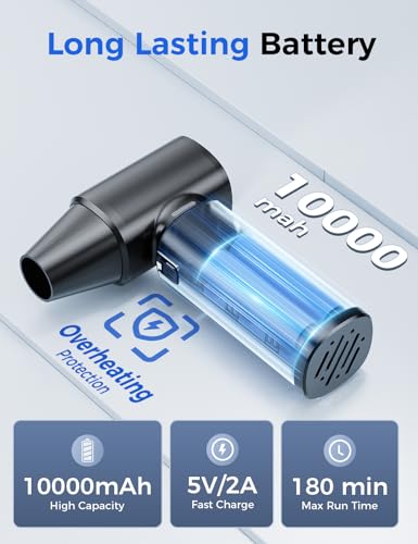 Carga rápida y duración prolongada de la batería: equipado con un cable de carga rápida tipo C, se carga completamente en 3-3.5 horas. La batería recargable incorporada de 10000mAh ofrece 15-180 minutos de tiempo de funcionamiento en modo de control de velocidad continuo, variando según la velocidad del viento. La batería interna cuenta con protección contra sobrecalentamiento, protección de corriente y protección contra cortocircuitos para garantizar la seguridad durante todo el proceso de carga.
