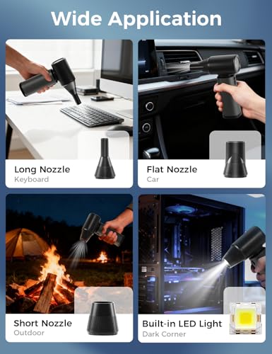 Los accesorios multifuncionales satisfacen diversas necesidades: este mini soplador de aire inalámbrico viene con 3 boquillas y 3 cabezales de cepillo, adecuado para varios escenarios como teclados de computadora y dispositivos electrónicos, mientras que también sirve para el hogar, el automóvil y los entornos al aire libre. Se destaca en inflar equipos, gestionar fogatas y soplar carbón para barbacoas, lo que lo convierte en una herramienta esencial para múltiples escenarios. La bolsa de almacenamiento simplifica la organización.