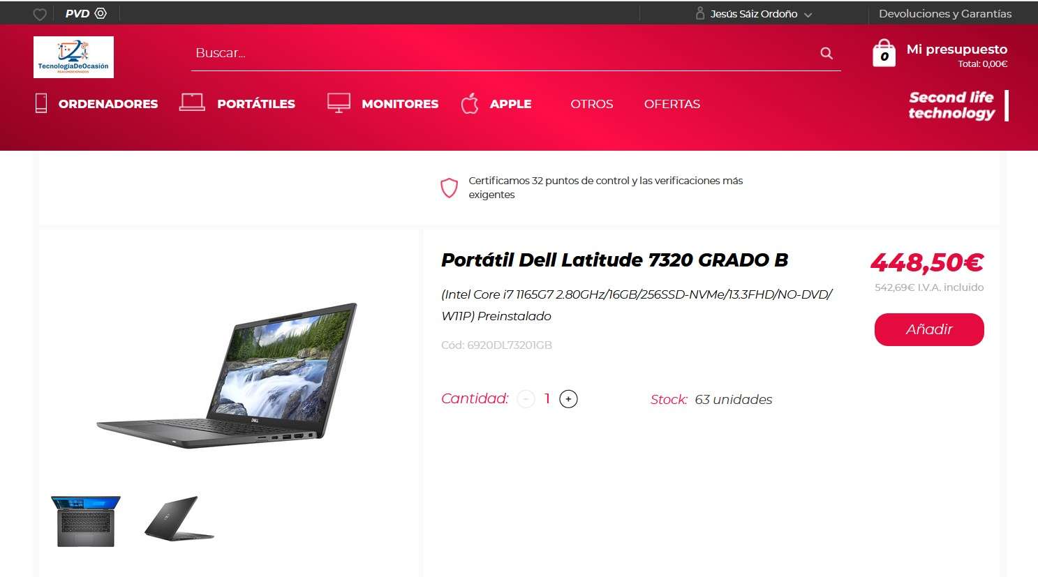 Portátil Dell Latitude 7320 GRADO B DELL Black Friday 🔥