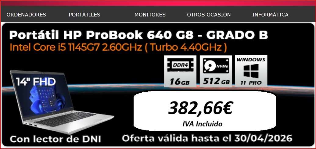 Portátil HP Probook 640 G8 GRADO B Con lector de DNI hasta el 30-4-2026
