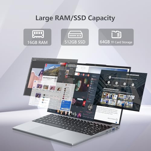 Amplio espacio de almacenamiento: las computadoras portátiles empresariales cuentan con SSD SATA de 512 GB + 64 GB TF de almacenamiento expandible, proporcionando mucho espacio para archivos, fotos, videos y más.