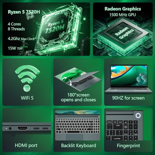 Portátil para juegos de 15.6 pulgadas, con 16 GB de RAM, SSD de 512 GB, procesador R5 7520H (hasta 4.3 GHz), pantalla de 1920 x 1080, Wi-Fi 5, Bluetooth 5.0, puerto HDMI x1, teclado