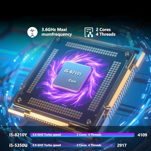 Procesador I5: Esta computadora portátil está equipada con Core i5-8210 Y, con una frecuencia turbo de hasta 3.60 GHz, que puede cargar aplicaciones sin problemas y proporcionar un rendimiento estable. Satisface las necesidades multitarea del entretenimiento diario.