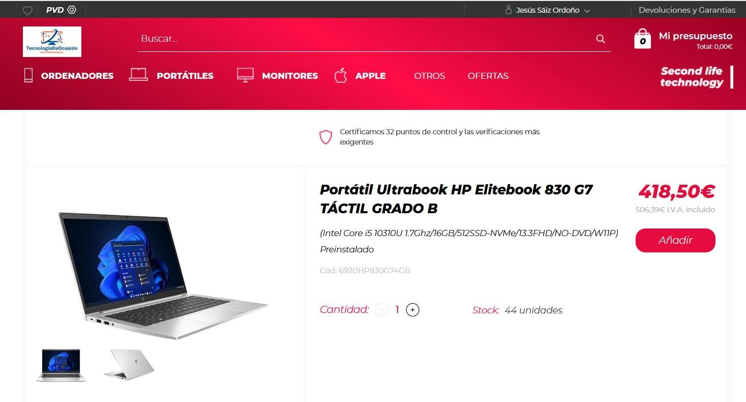 Portátil Ultrabook HP Elitebook 830 G7 TÁCTIL GRADO B 🖤 Black Friday – Oferta hasta el 3-12-2025 –