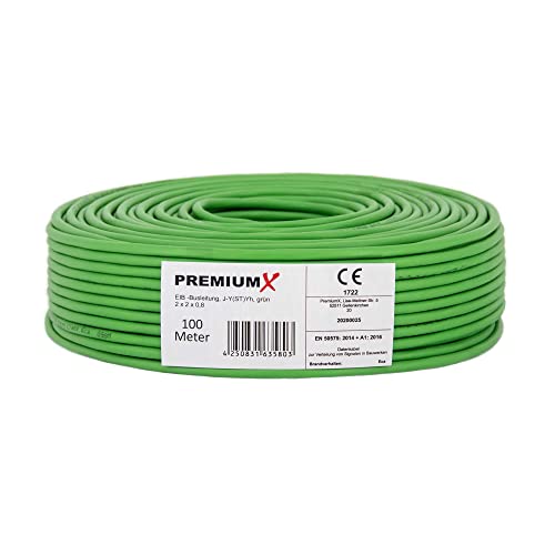 Premium X EIB KNX – Cable de bus (100 m, J-Y, 2 x 2 x 0,8, Eca, cable de bus, cable de telecomunicaciones, cable de datos, cable de datos, cable de datos), color verde
