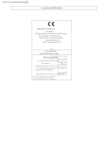 Especificaciones: PRENSA STOVE – Estufa de Leña con Horno Modelo ETNA 13 kW
