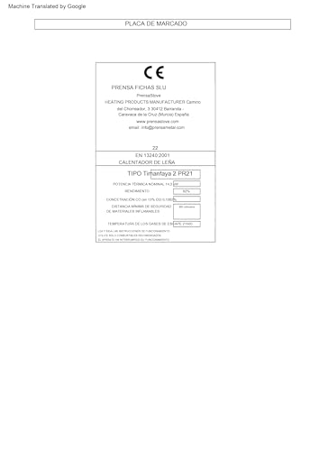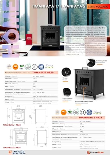 Especificaciones: PRENSA STOVE – Estufa de Leña Grande con Horno Modelo TIMANFAYA 2 de 14,3 kW