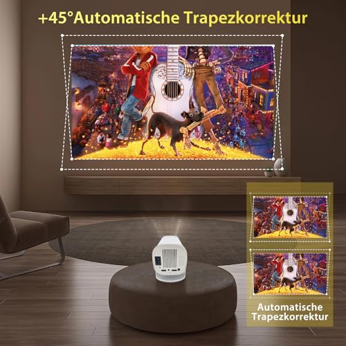【Corrección trapezoidal automática de +45°】Gracias a la corrección de trapecio automática y el enfoque manual, puede configurar el proyector de forma rápida y sin problemas en 3 segundos antes de ver sus películas favoritas. Nuestro ZEBRAMOL proyector ofrece corrección trapezoidal automática de ±45°, lo que garantiza una imagen perfectamente alineada desde cualquier ángulo. Disfrute de cada detalle y colores vibrantes en una pantalla de máximo 130″ , creando una noche de cine o una sesión de juego inolvidable.