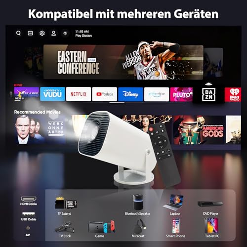 Especificaciones: Proyector 4K, ZEBRAMOL Mini Proyector Portátil – WiFi6 Bluetooth 5.0, Compatible con HD 4K 1080P Proyector con Corrección Automática de Tecla Vertical 180° Giro Proyector Portátil, con Android 11.0