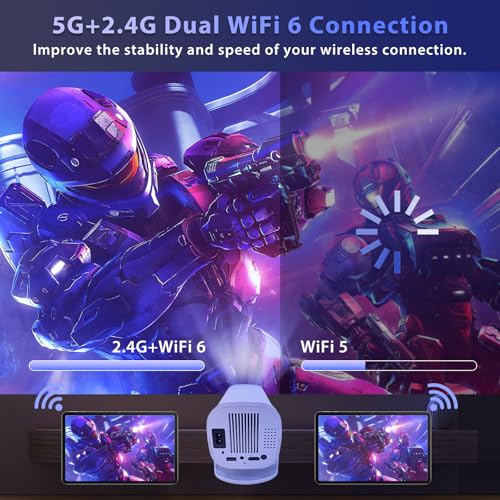 Proyector 4K, ZEBRAMOL Mini Proyector Portátil – WiFi6 Bluetooth 5.0, Compatible con HD 4K 1080P Proyector con Corrección Automática de Tecla Vertical 180° Giro Proyector Portátil, con Android 11.0