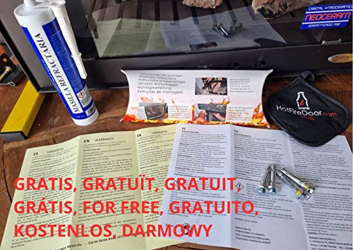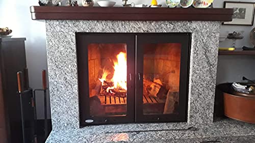 Puerta A MEDIDA Chimenea Leña, Cristal Vitroceramico, Regulador Entrada de Aire, +Eficiencia de Temperatura y Seguridad de la Combustion del Fuego. Tamaño y Posición del Tirador A Elegir