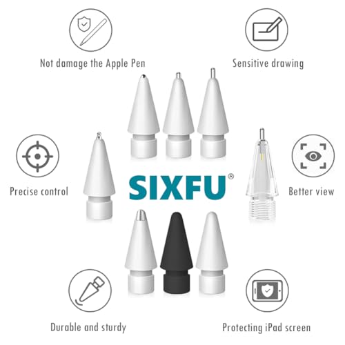 Puntas de repuesto para SIXFU para Apple Pencil: puntas SIXFU diseñadas compatibles con Apple Pencil Pro, Apple Pencil de 2ª generación, Apple Pencil de 1ª generación, Apple Pencil USB-C y lápiz digital logitech. No es compatible con otros iPad Stylus.