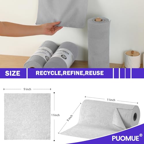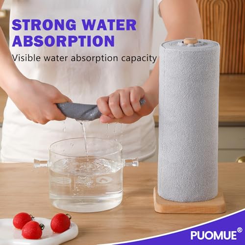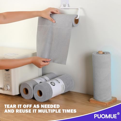 Puomue Paquete de 55 Paños de Limpieza de Microfibra en Rollo, Toallas Reutilizables Desprendibles, 11″ X 9″, Paño de Microfibra Ultra Absorbente y Sin Pelusa para Limpiar Automóviles, Cocina
