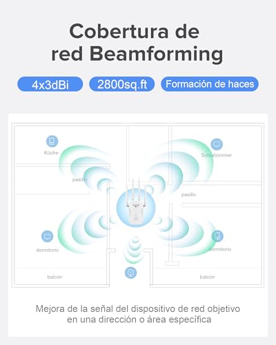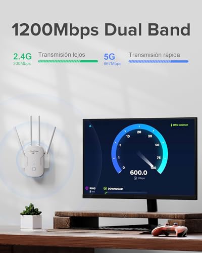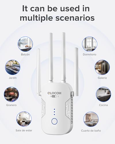 Especificaciones: QLOCOM 2024 Nuevo Amplificador Señal WiFi 1200Mbps Repetidor WiFi, Doble Banda 5GHz y 2.4GHz Extensor WiFi con WPS, WiFi Booster Compatible con Todos los Routers