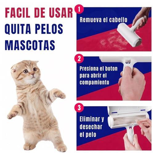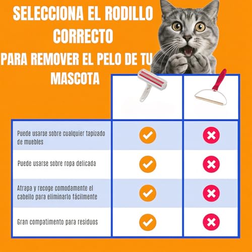 🐾 Sin complicaciones; el rodillo pelo mascotas está diseñado para ser reutilizable y lavable, lo que garantiza una limpieza duradera sin necesidad de reemplazos constantes; su material de plástico resistente asegura su uso prolongado en diversas superficies