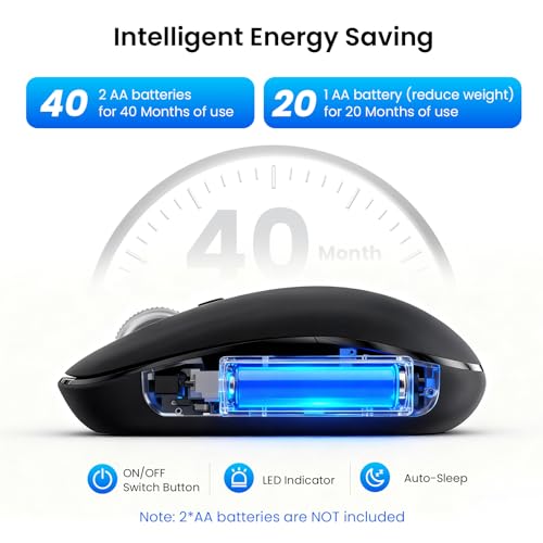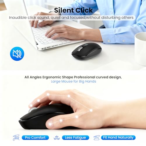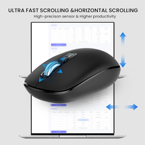 Ratón silencioso inalámbrico Bluetooth para portátil Mac, interruptor de un clic multidispositivo, rodillos de metal de alta velocidad de 4 vías, DPI ajustable, ergonómico de tamaño completo