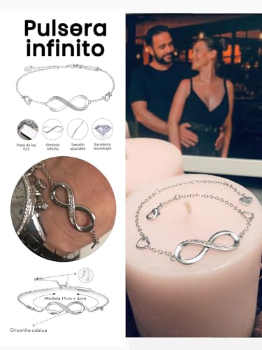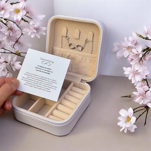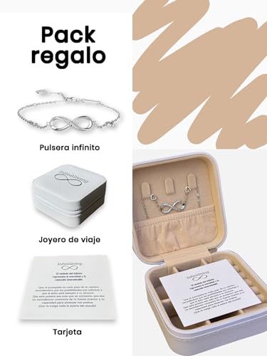 Especificaciones: Regalos originales para mujer | Pack regalo | Pulsera Infinito Plata Ley 925 + Joyero Viaje cuero PU + Tarjeta | Set Regalo para chica, pareja, novia, amiga, madre, hija | Símbolo Amor y Amistad