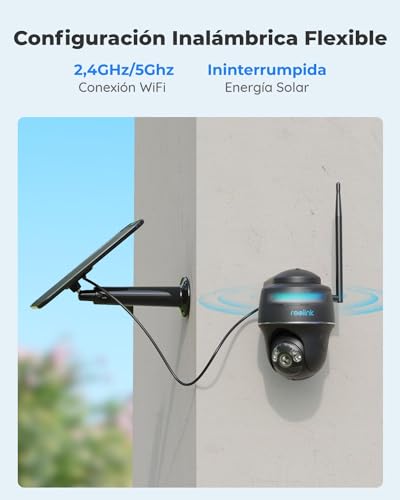 Especificaciones: Reolink 5MP Camara Vigilancia WiFi Exterior Solar, Cámara Vigilancia Inalambrica 360° con Bateria, Camara WiFi 2,4/5 GHz, Detección Smart, Compatible con Alexa/Cloud, Argus PT(Negro) + Panel Solar