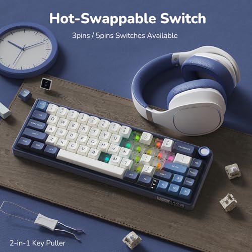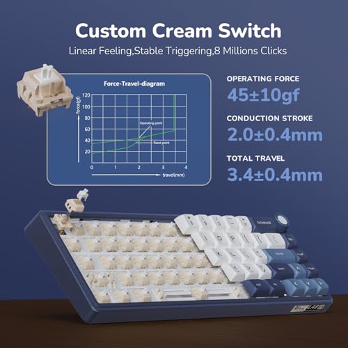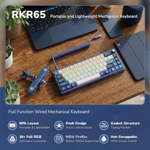 RK ROYAL KLUDGE R65 Wired Mode Gasket Mechanical Keyboard, Cream Switch, Blue
