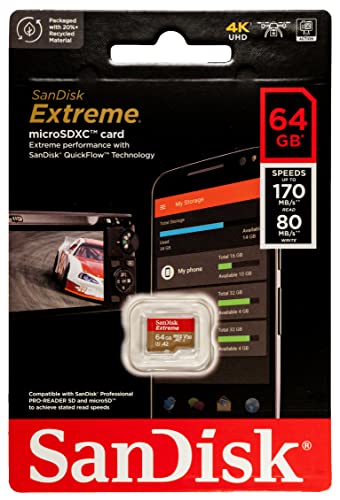 Especificaciones: SanDisk – Tarjeta de memoria MicroSDXC Extreme de 64 GB (paquete de 5) funciona con DJI Drone Series Mini 4 Pro (SDSQXAA-064G-GN6MN) V30 A2 4K UHD UHS-I Bundle con (1) lector de tarjetas Everything